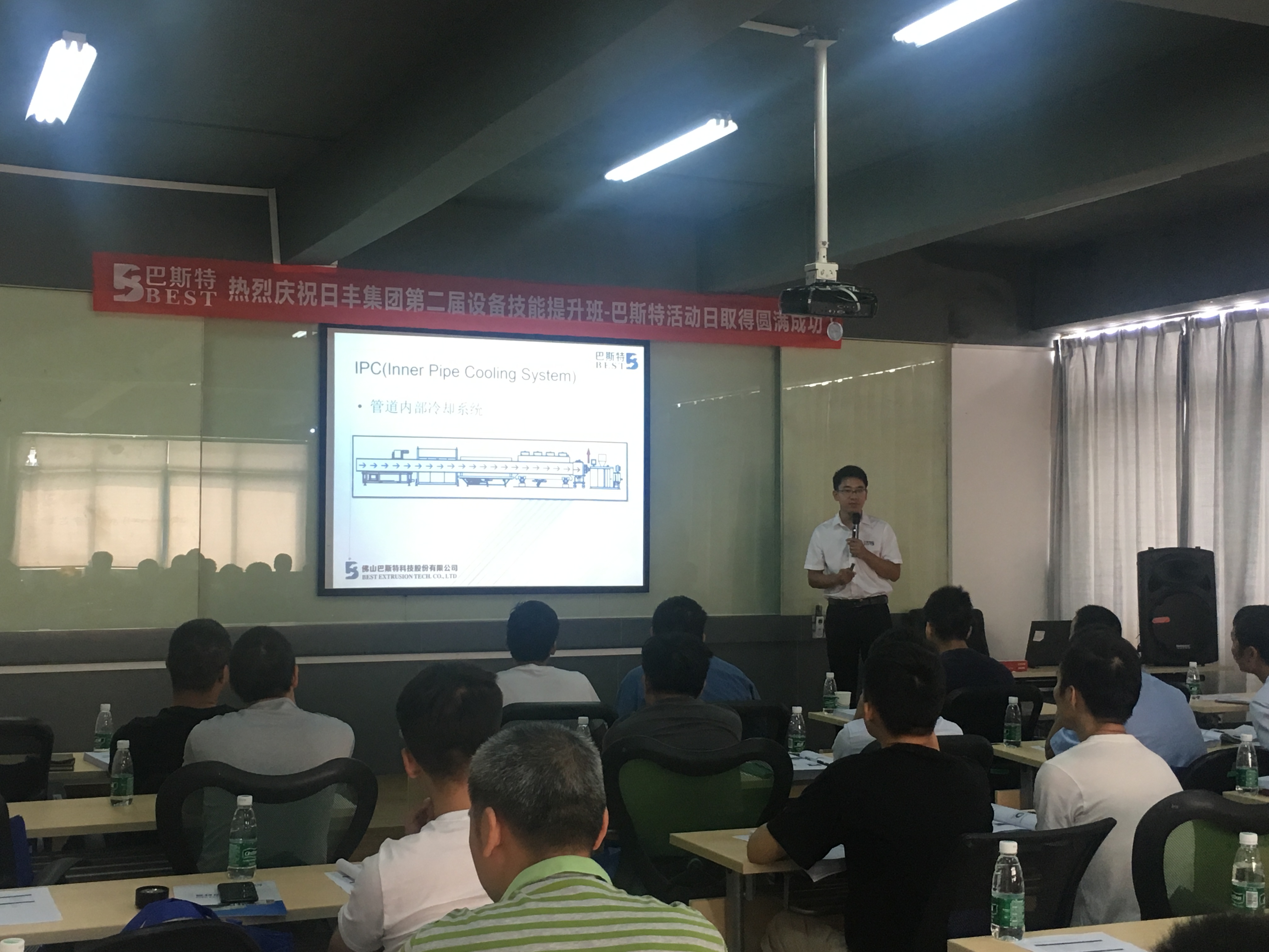 知名管材生產(chǎn)企業(yè)——日豐集團(tuán)有限公司第二屆設(shè)備技能提升班訓(xùn)練營(yíng)一行來(lái)到了佛山巴斯特科技股份公司,進(jìn)行了為期一天的參觀培訓(xùn)交流活動(dòng)。