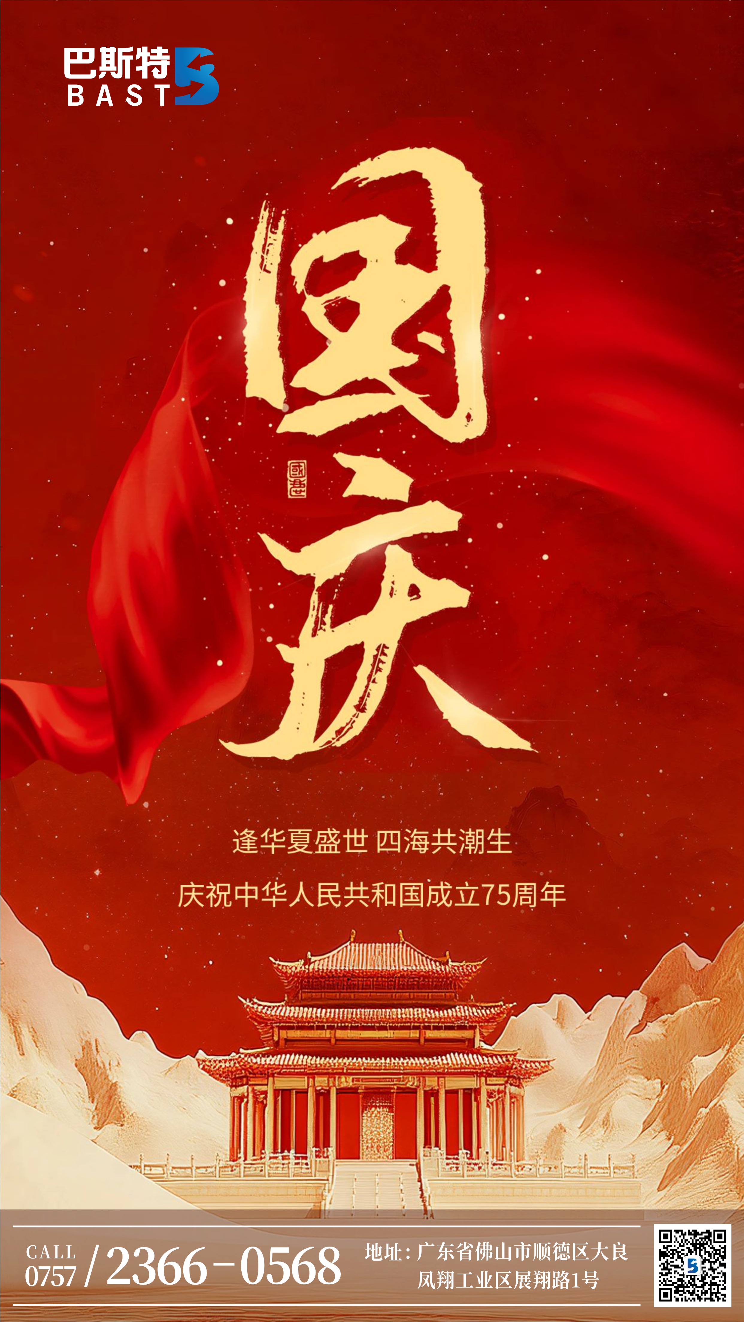 紅旗飄揚(yáng),國(guó)泰民安;盛世華誕,錦繡華章。在這金秋送爽、丹桂飄香的美好時(shí)節(jié),我們迎來(lái)了偉大祖國(guó)75周年的光輝節(jié)日。廣東巴斯特科技股份有限公司向祖國(guó)獻(xiàn)上最誠(chéng)摯的祝福,向一直以來(lái)支持公司發(fā)展的廣大客戶、合作伙伴及辛勤工作的員工致以節(jié)日的問(wèn)候和衷心的感謝!